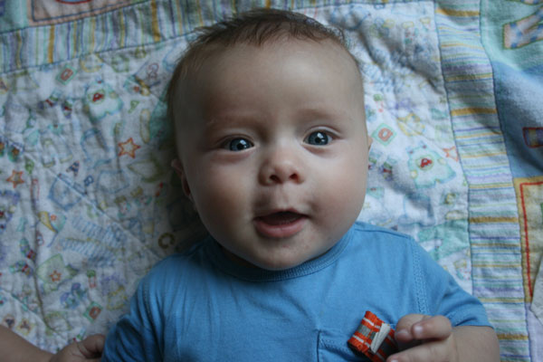 The Plagiocephaly also has no for sure cause. It is most likely a combination of again, a large birth weight, being a multiple, and having Torticollis - which has lessened his ability to look all directions.